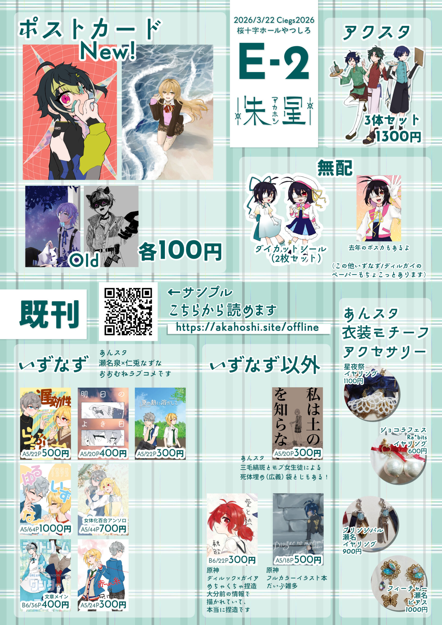 というわけでお品書きです 頒布物の種類が異様なせいで配置が終わっていますね。