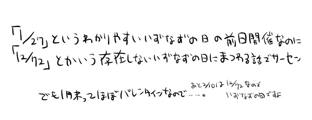 2025年1月26日に開催されたいずなずプチオンリーのペーパーラリーのペーパーだったものです。2月10日は12月27日なのでいずなずの日です。